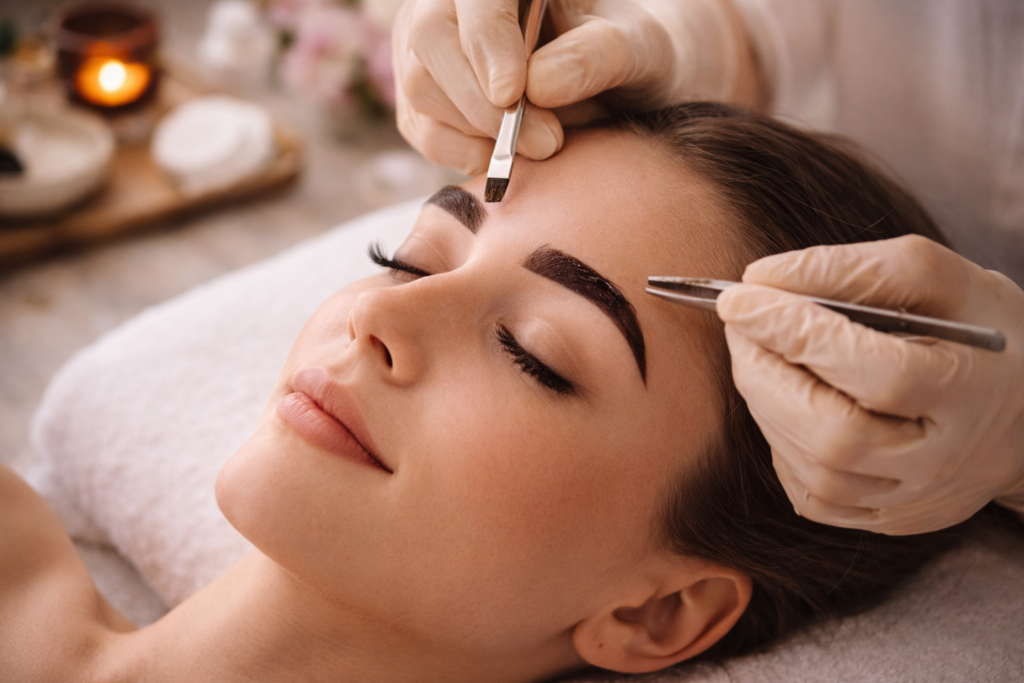 Perfekt geformte Augenbrauen und ausdrucksstarke Wimpern – präzise gezupft und professionell gefärbt für einen natürlichen, gepflegten Look.